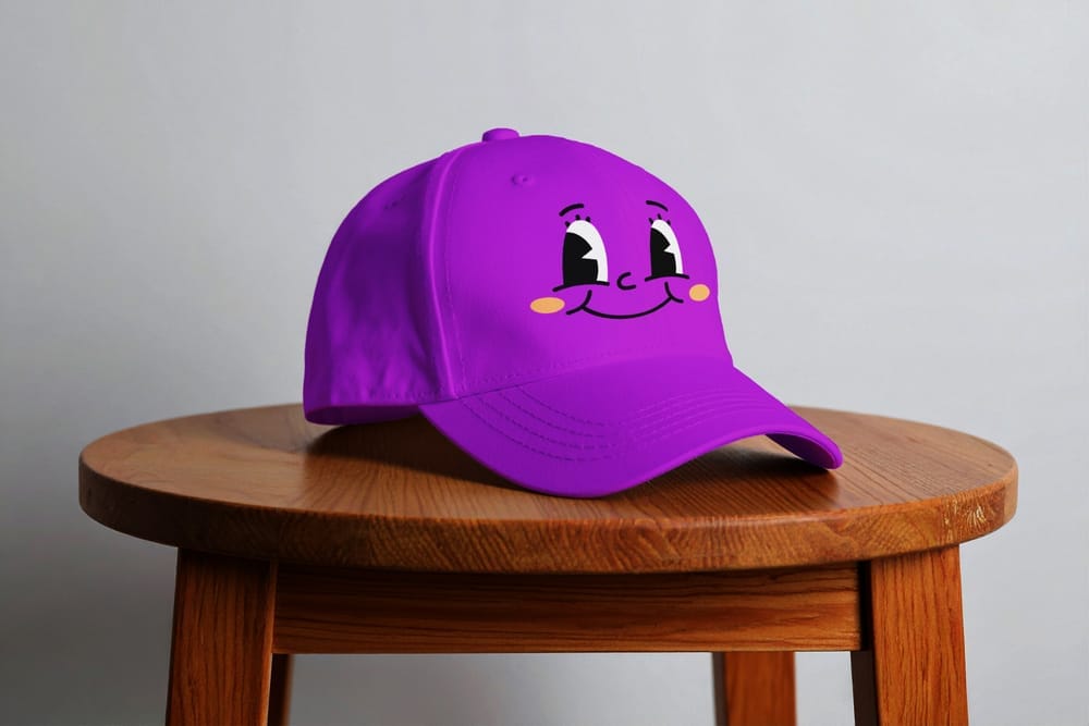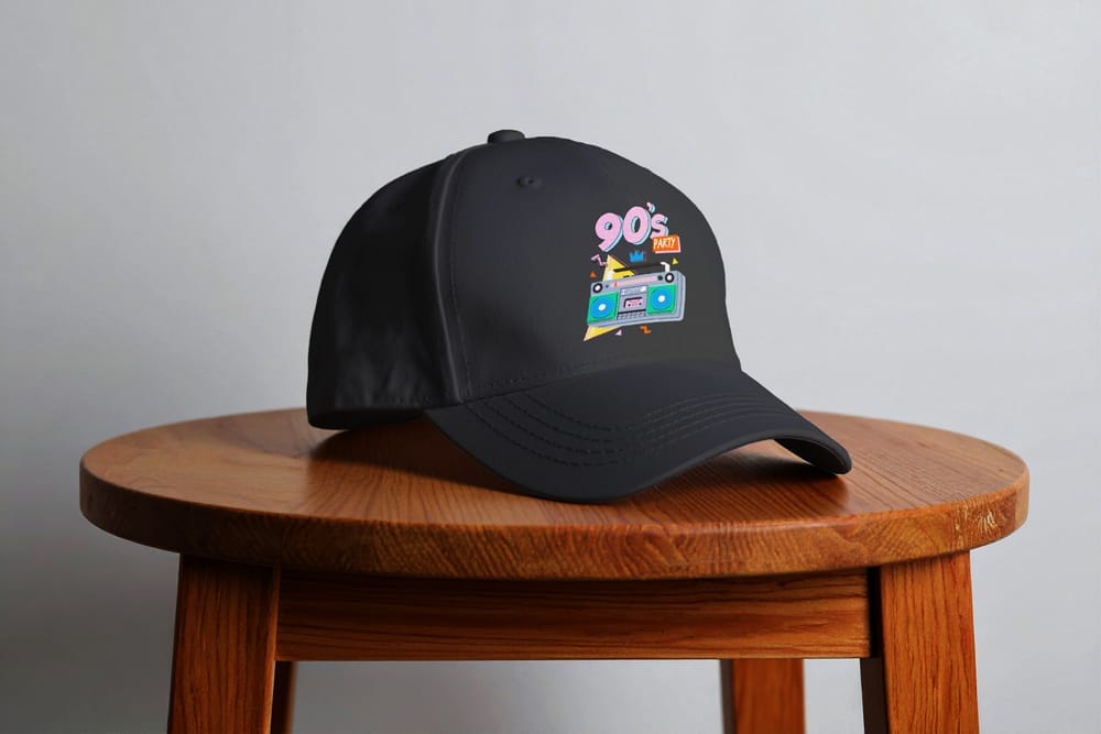 Minimalist Baseball Cap Mockup on Wooden Stool
