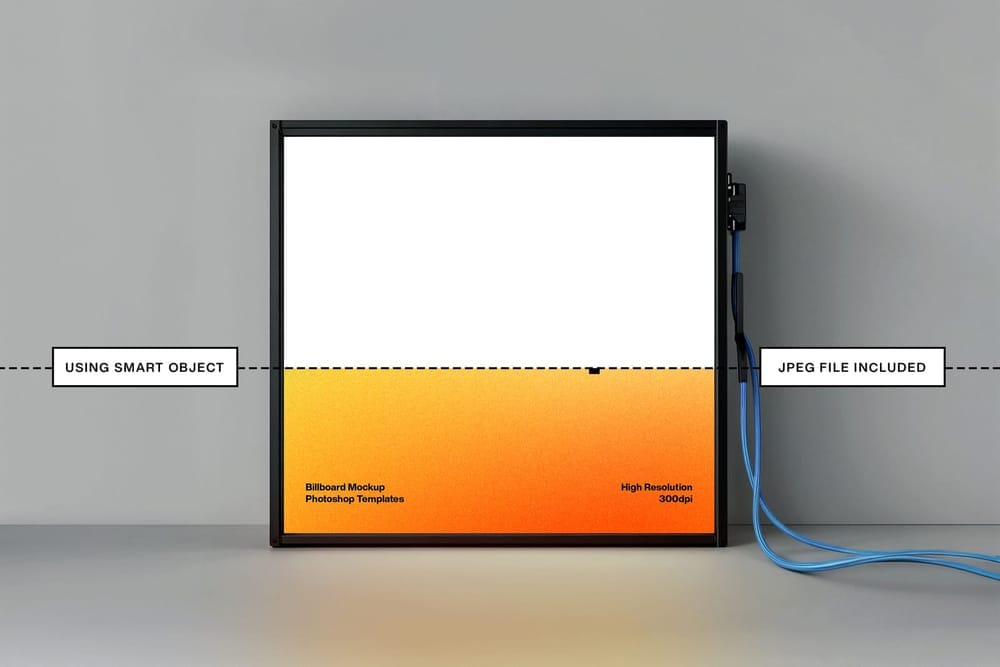 Neon Box Billboard Mockup with Cable