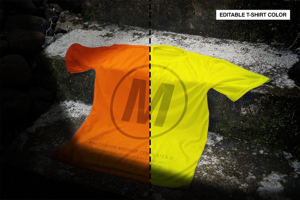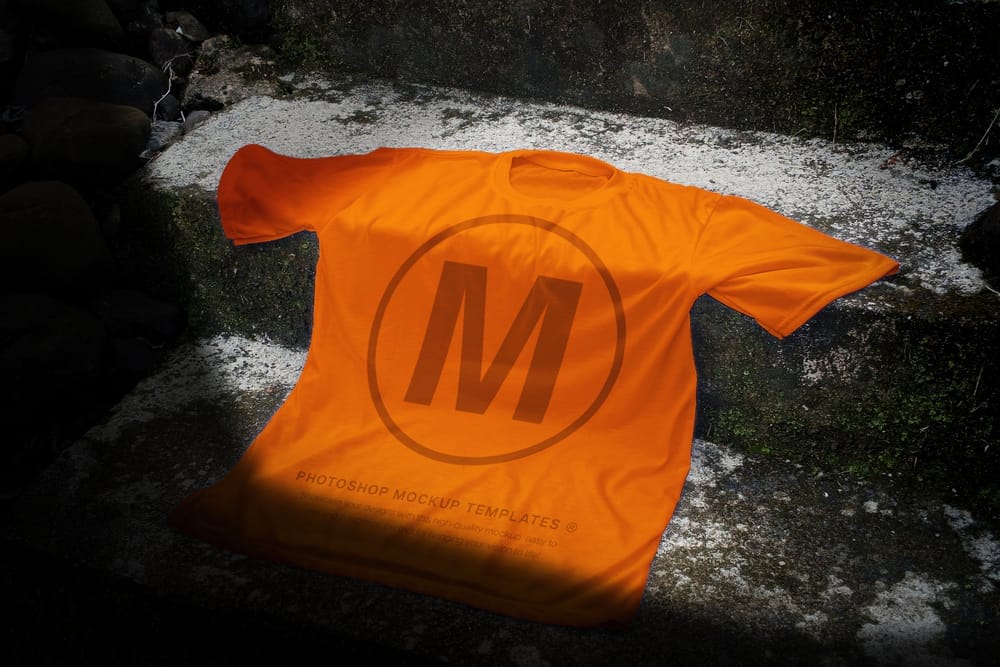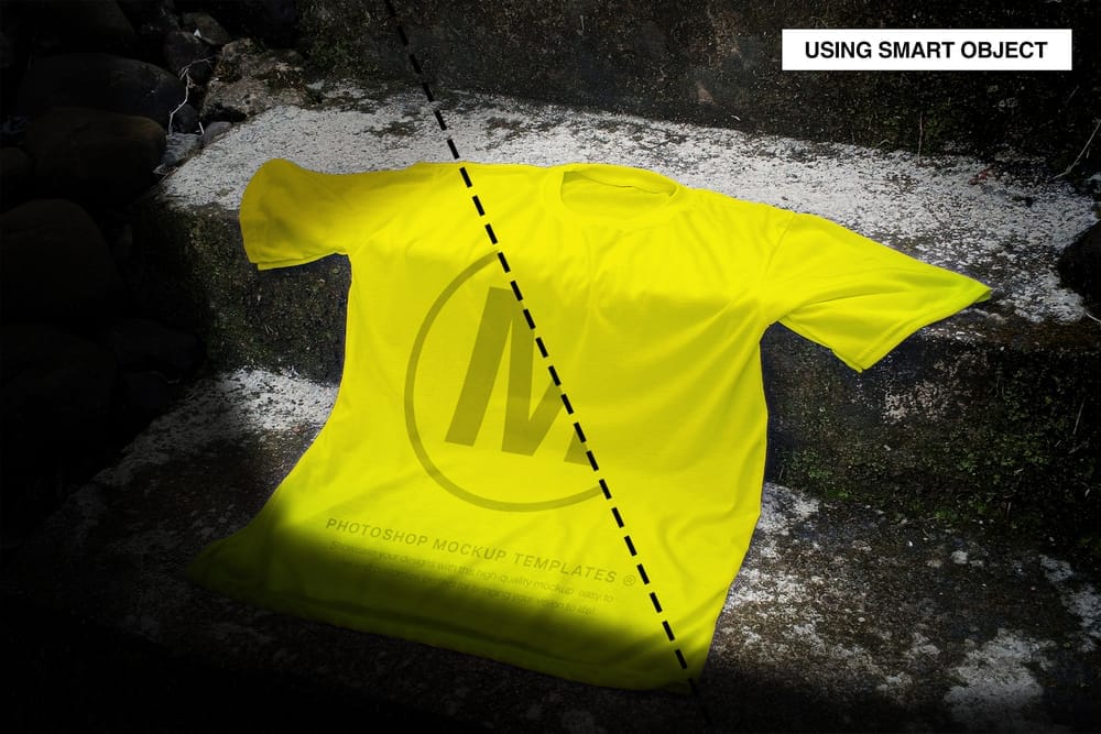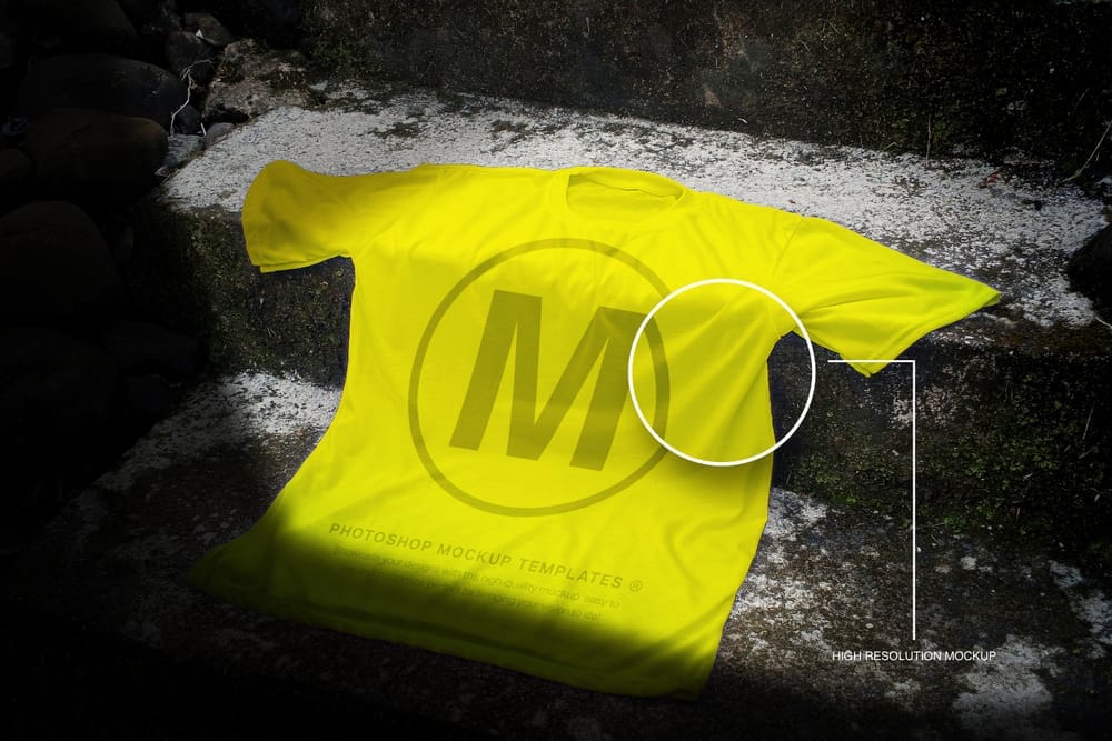 Realistic Yellow Tee Laying on Stone Steps